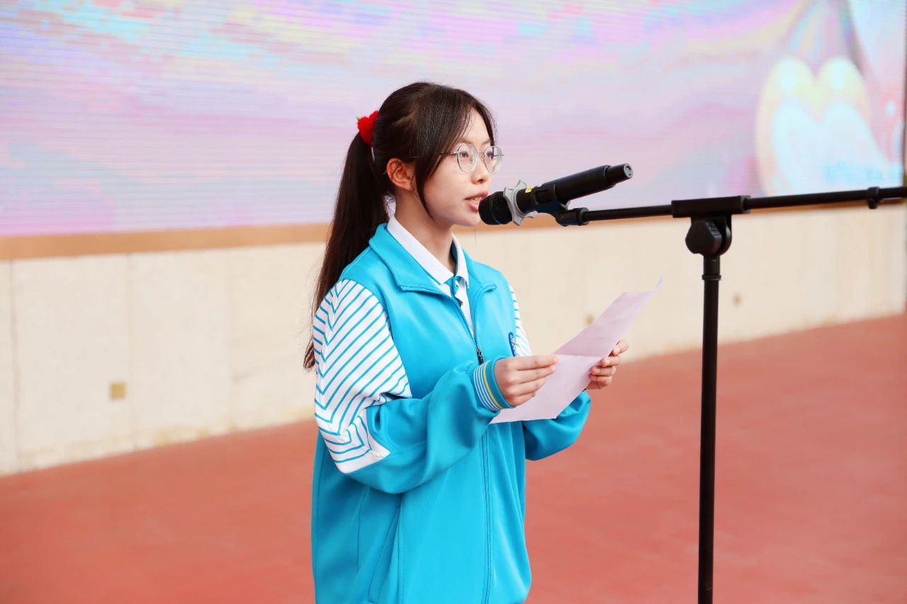537班李姝伟同学作为学生代表作了题为《悦纳自我,不负韶华》的国旗下讲话。