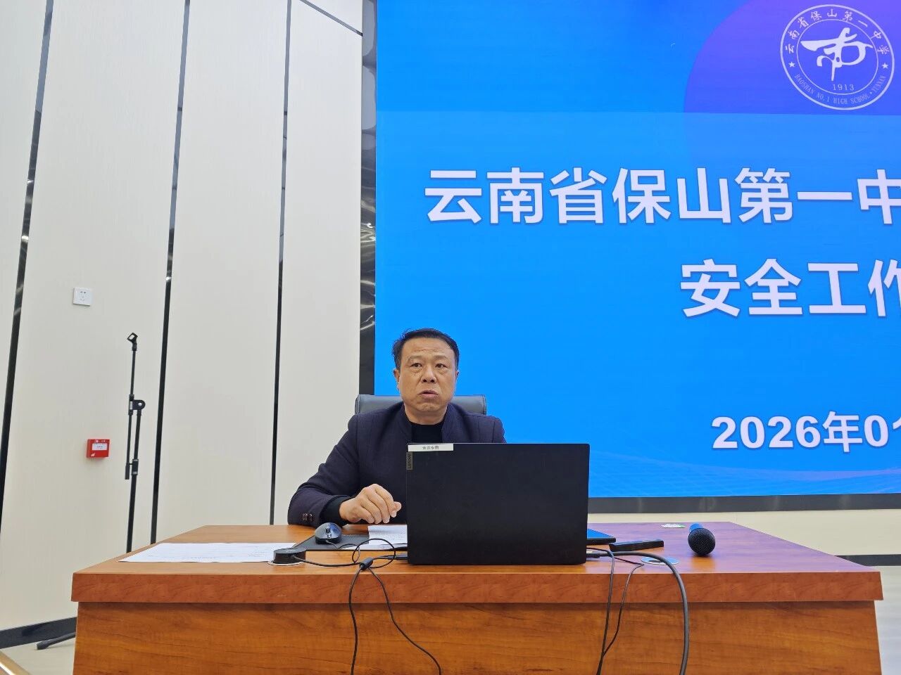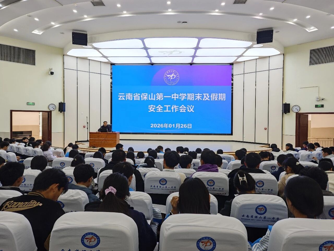2026年1月26日下午4时,云南省保山第一中学德育安全处宁德坤主任在1号报告厅主持召开期末及假期安全工作专题会议,各班班长、副班长、纪律委员、安全委员参会。
