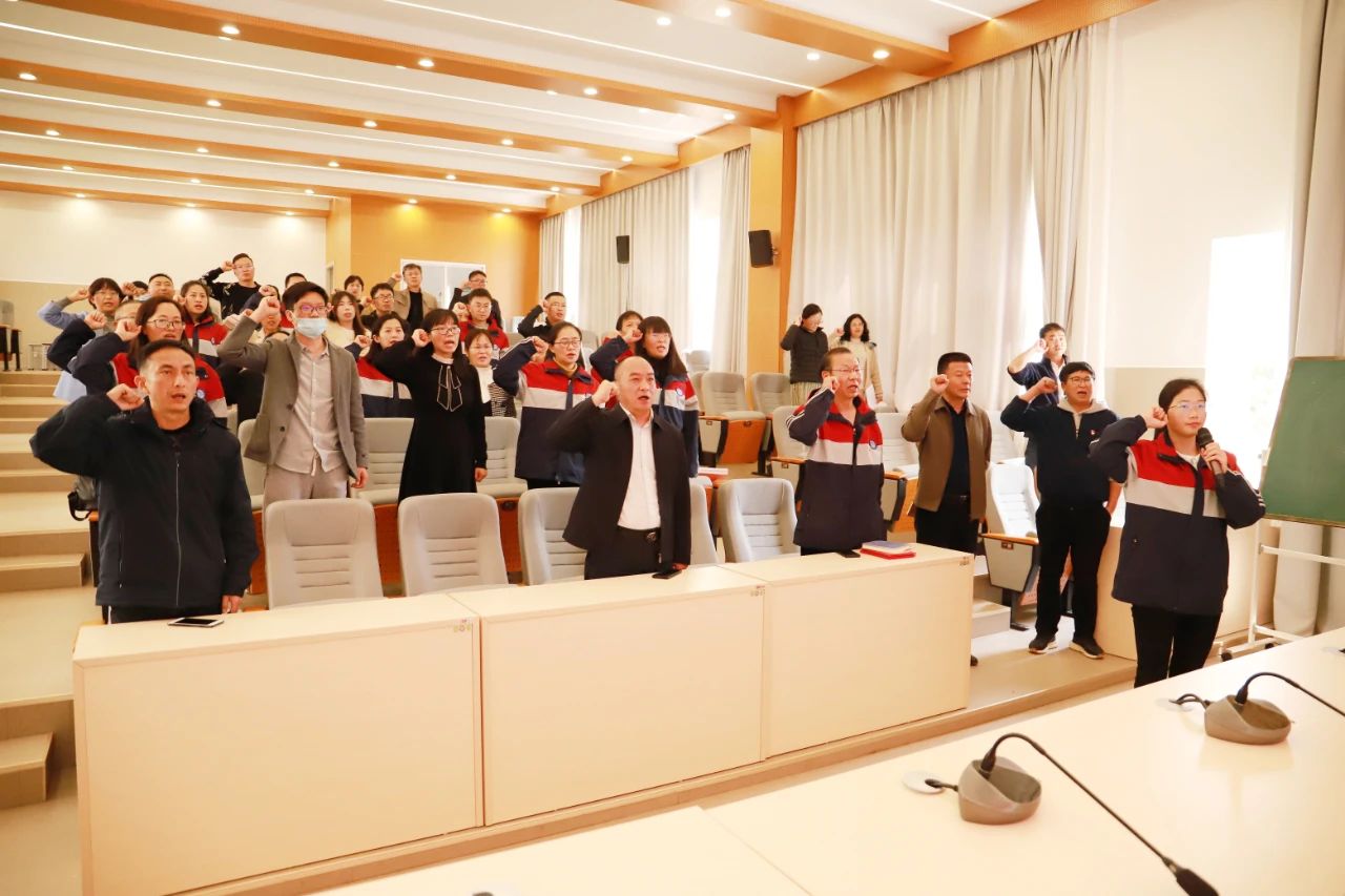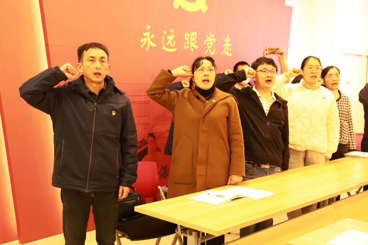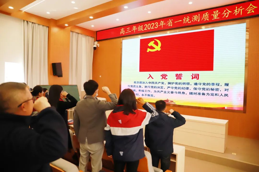 全体党员教师重温入党誓词,坚定信心,增强工作斗志。