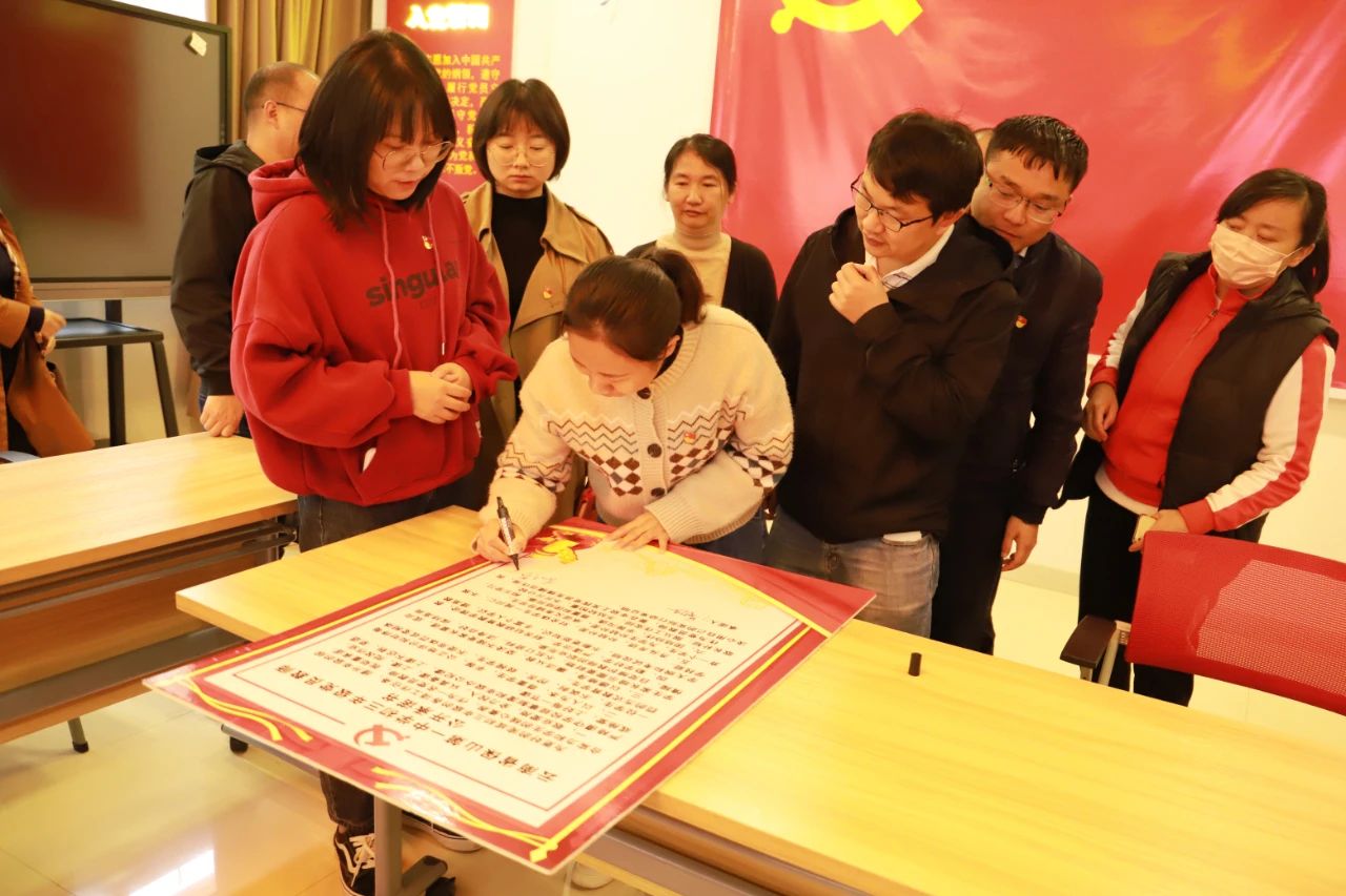 全体党员教师现场签订《党员教师公开承诺书》。