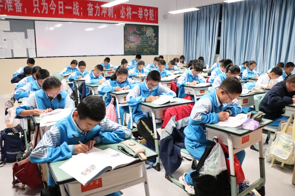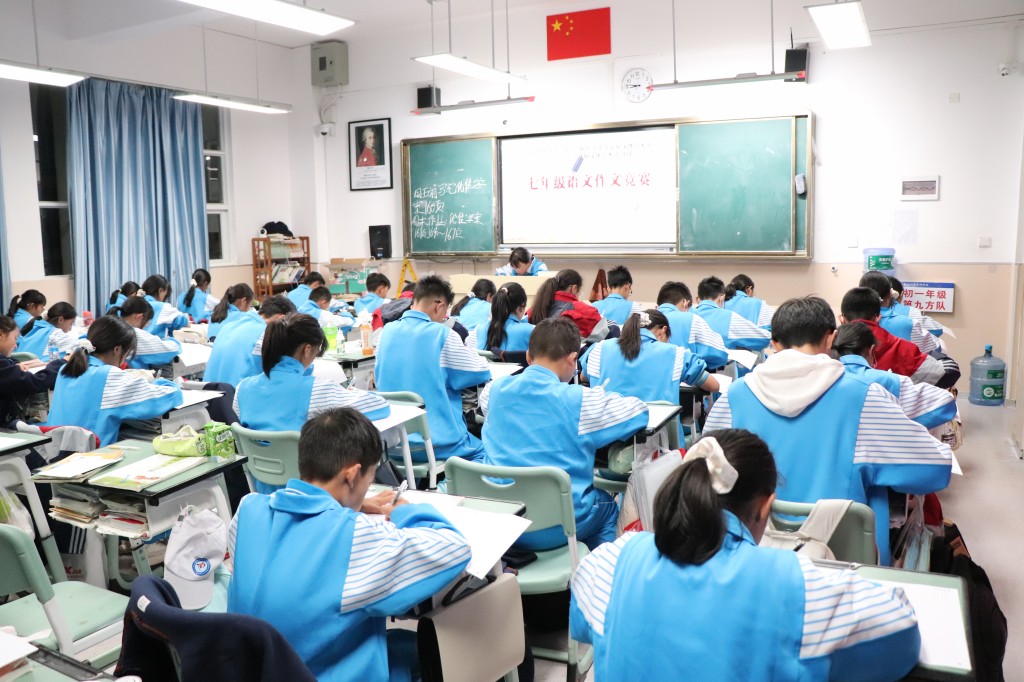 作文竞赛现场静谧而又热烈,只闻笔尖在纸上沙沙作响。同学们或凝神思考,或奋笔疾书,用文字描绘青春梦想,书写少年情怀。