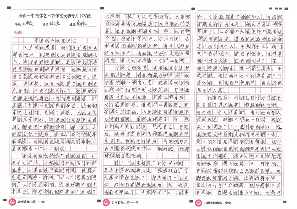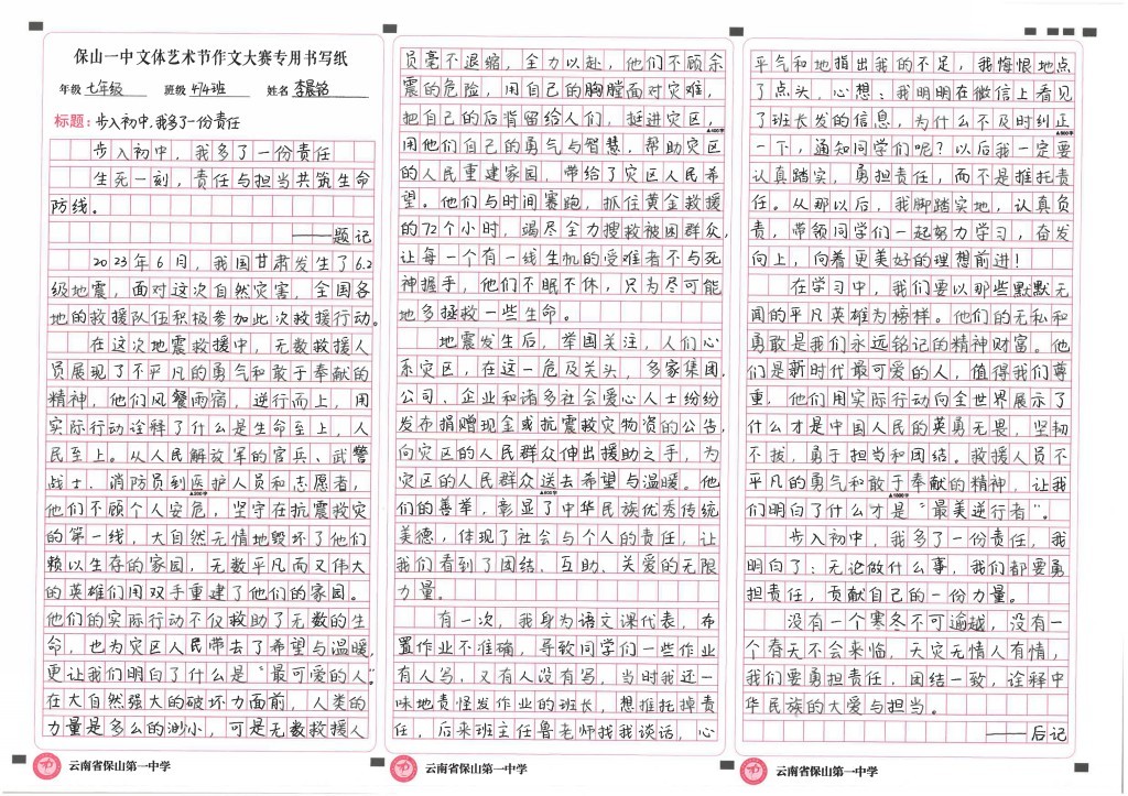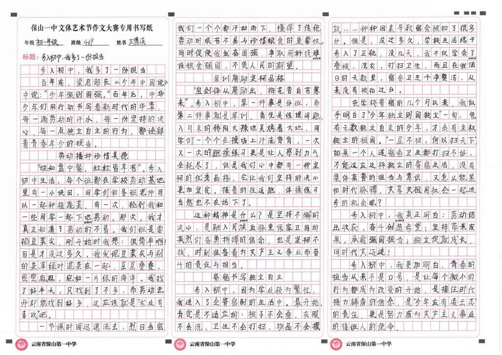 同学们或用生动的笔触记录青春故事,以细腻的笔触描写成长瞬间,情感真挚,令人动容;或以独特的视角表达独立思考,立意深刻,论证有力,展现出深厚的文学功底和家国情怀。