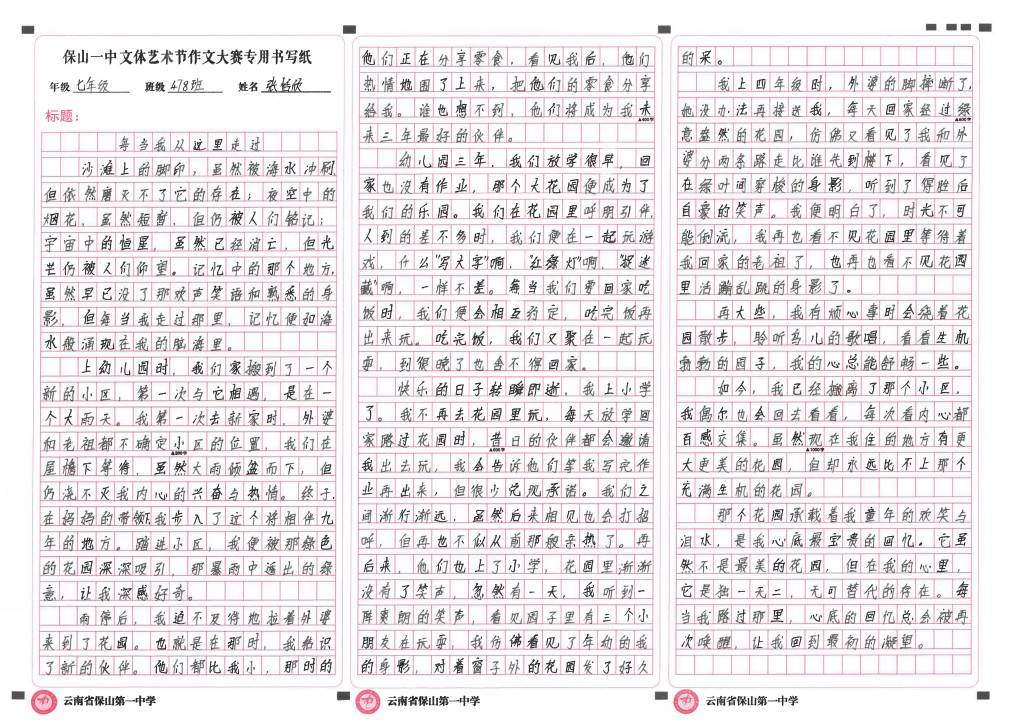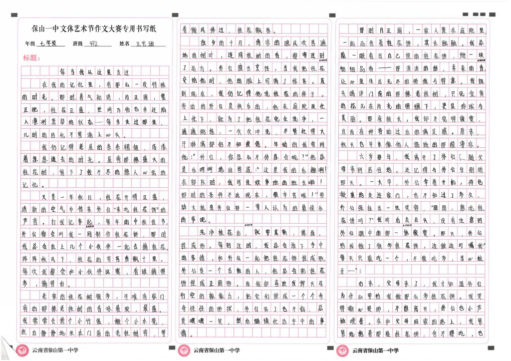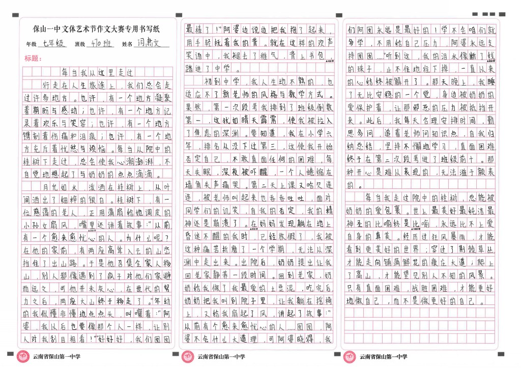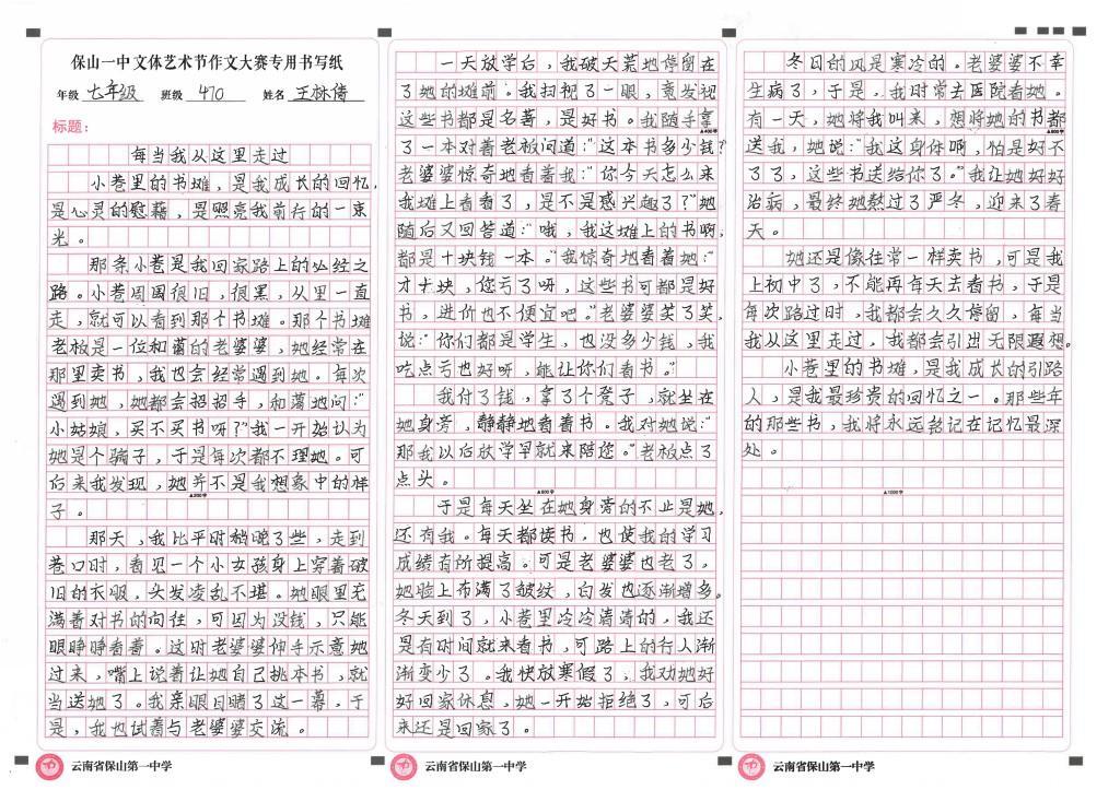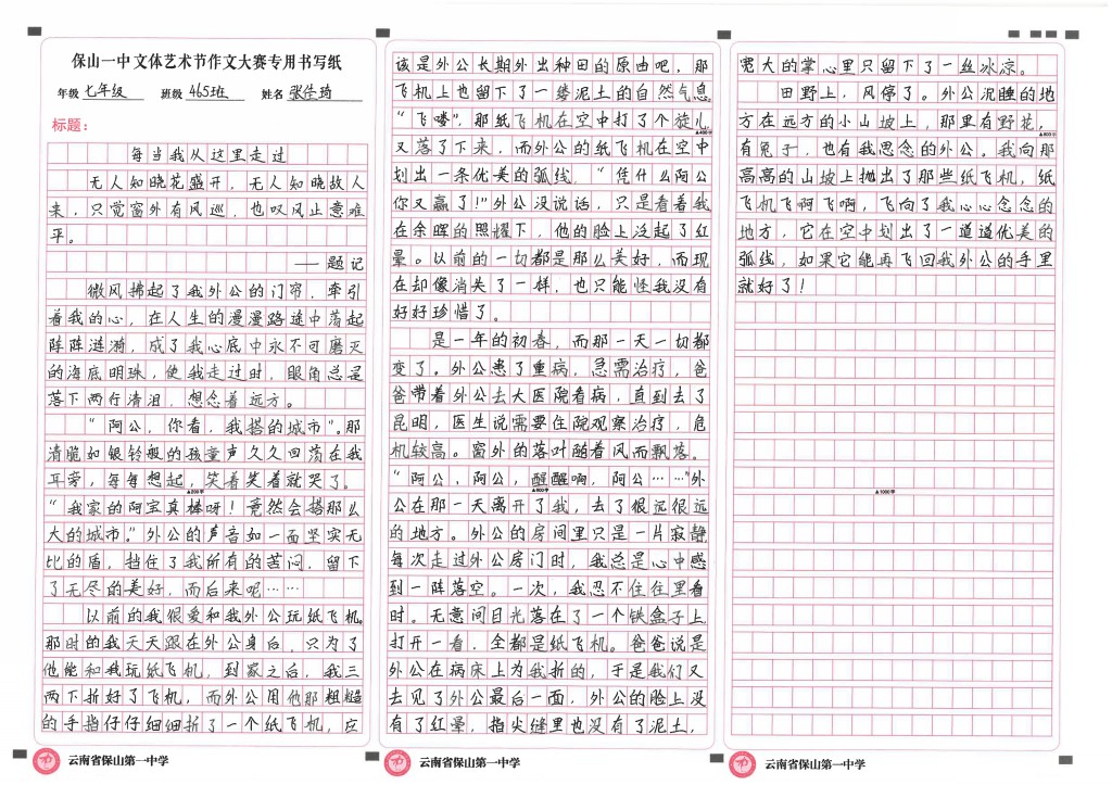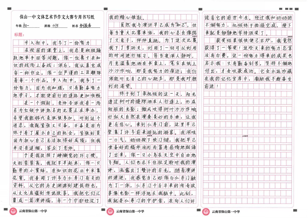 作文竞赛 一等奖